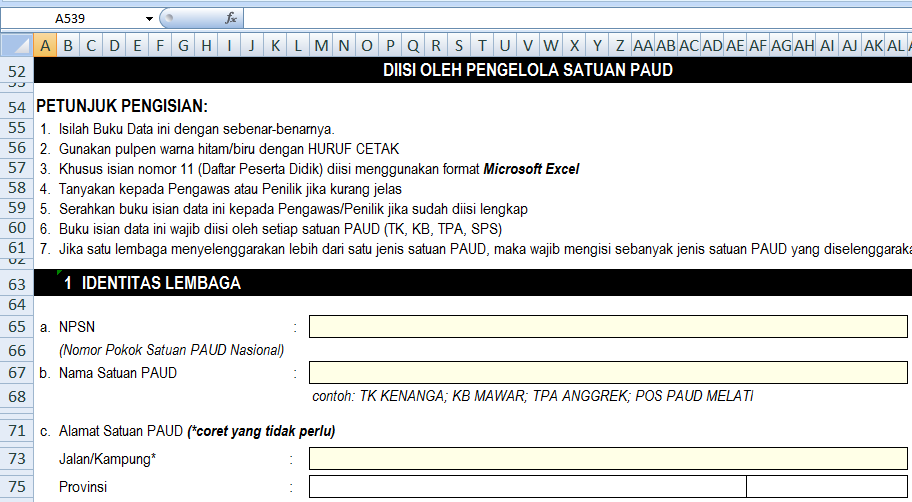 DOWNLOAD FORMULIR DAPODIK PAUD MICROSOFT EXCELDOWNLOAD HERE